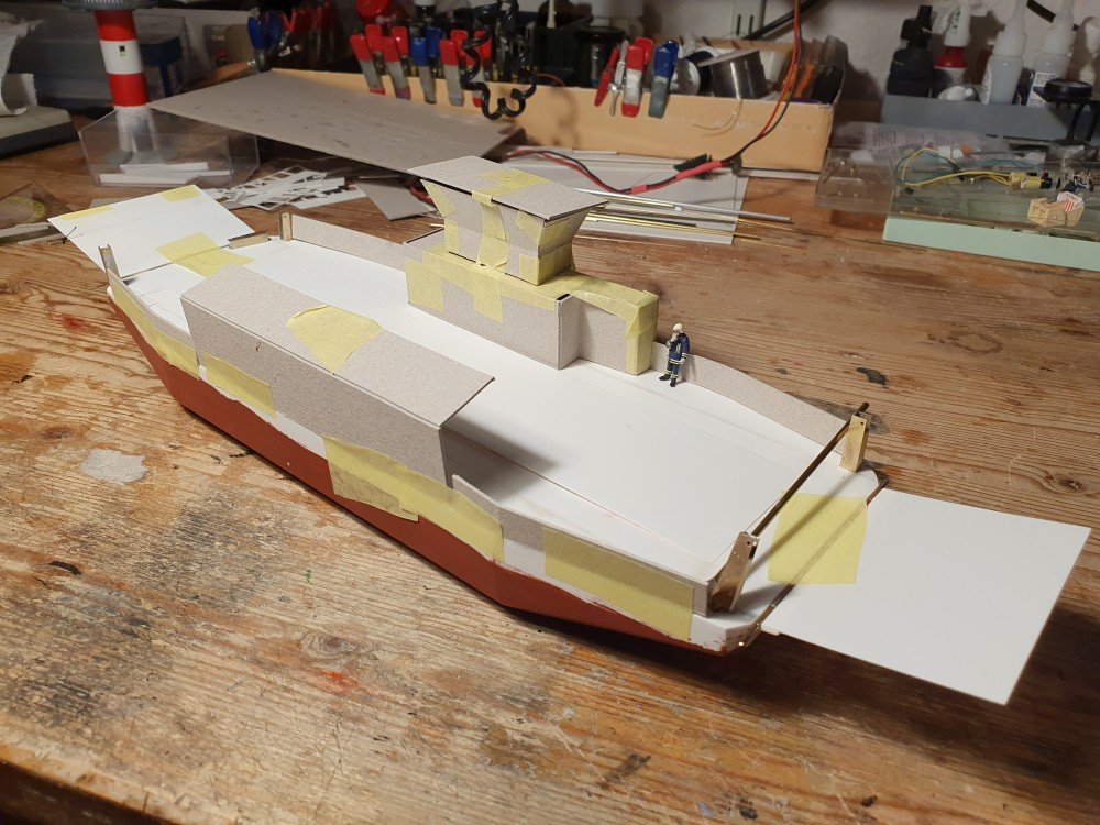 Ich habe ein paar Skizzen gemacht, wie ich sie mir vorstelle, aber auf dem Papier schienen sie falsche Proportionen zu haben. Also wurden ein paar Attrappen aus Pappe gebaut. Und siehe, es passt doch.