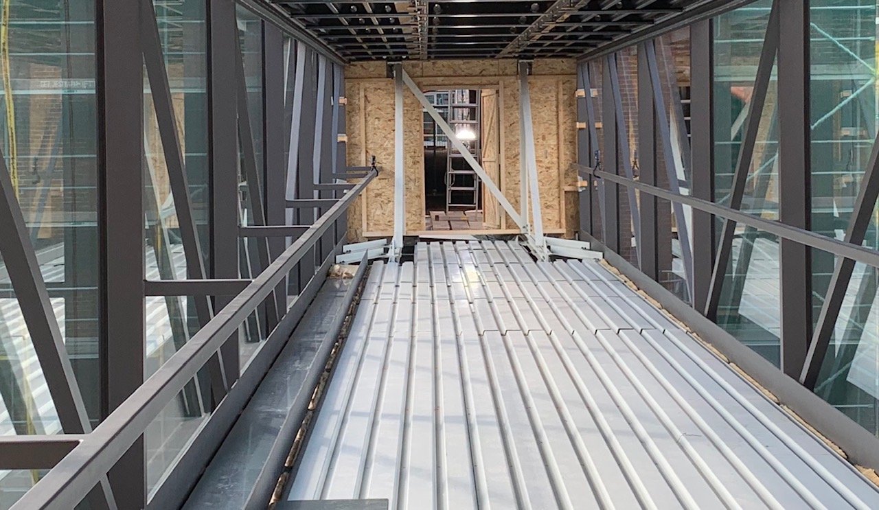 Das Thema auf der Brücke lautet "Die Welt von oben" und wird auf 50cm Breite auf der linken Seite der Brücke im Fußboden statt finden.