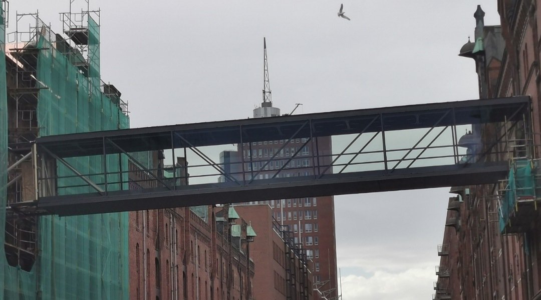 Kann ja niemand ahnen, dass so eine 36 Tonnen schwere Verbindung zweier Speicherstadtblöcke über Jahre geplant, genehmigt, vorfinanziert, konstruiert und vertraglich bindend maßgeschneidert gefertigt wird. Und dann soll man wegen einer Epidemie die fertiggestellte Brücke verscherbeln um die Kosten für den Schwertransport und Kran zu sparen, wovon wieder andere Firmen die Krise überleben?