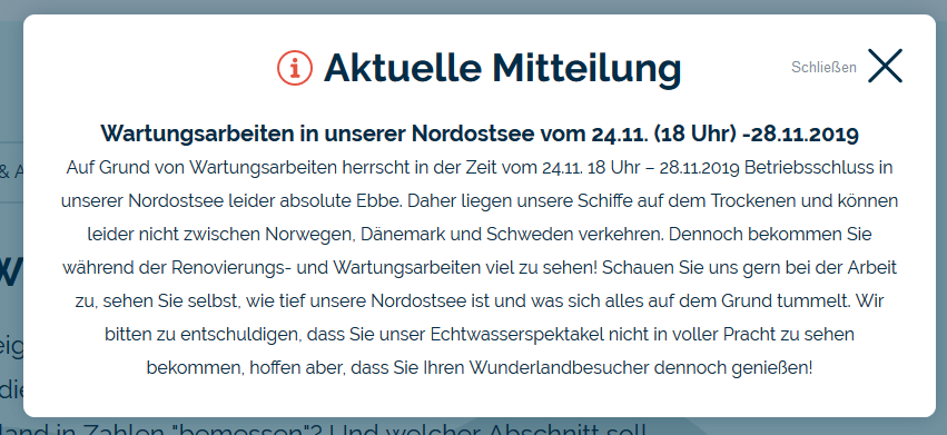 Ich hoffe sehr, dass die Arbeiten an Meeresgrund und Flusensieb nun erfolgreich abgeschlossen werden konnten, und dass nun wieder "Wasser marsch" im Skandinavienabschnitt herrscht. Und vielleicht gab es ja tatsächlich eine Gelegenheit, bei dieser Ebbe 2019 die Schleusentore zukunftssicherer zu machen.