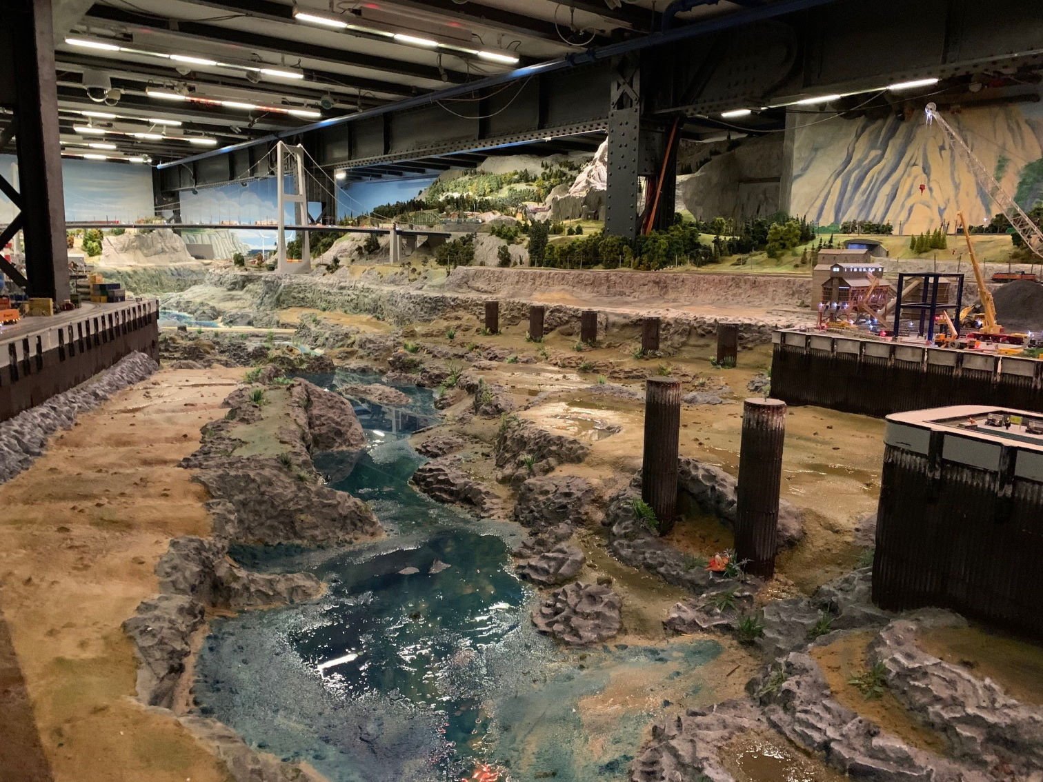 Klares und kühles Wasser für das Schlepperballett und die Mitarbeiter der Unterwasserstation, die mal eine ganze Woche frei haben. Es wäre schön, wenn bei einer solchen Generalüberholung auch die Tore der Schleuse besser abgedichtet werden könnten. Zwischen Weihnachten und Silvester werden dann wieder die herrlichen Modelle der Seebärenbande (IG Mikromodell) das wunderbare Gewässer zusätzlich befahren.