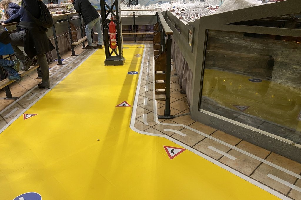 Wie kommt man nur auf eine so verrückte Idee mit den abgeklebten Flächen? Ich kann mich nur an ein Musical erinnern in dem es auch gelbe Wege gegeben hat. Der Zauberer von Oz.