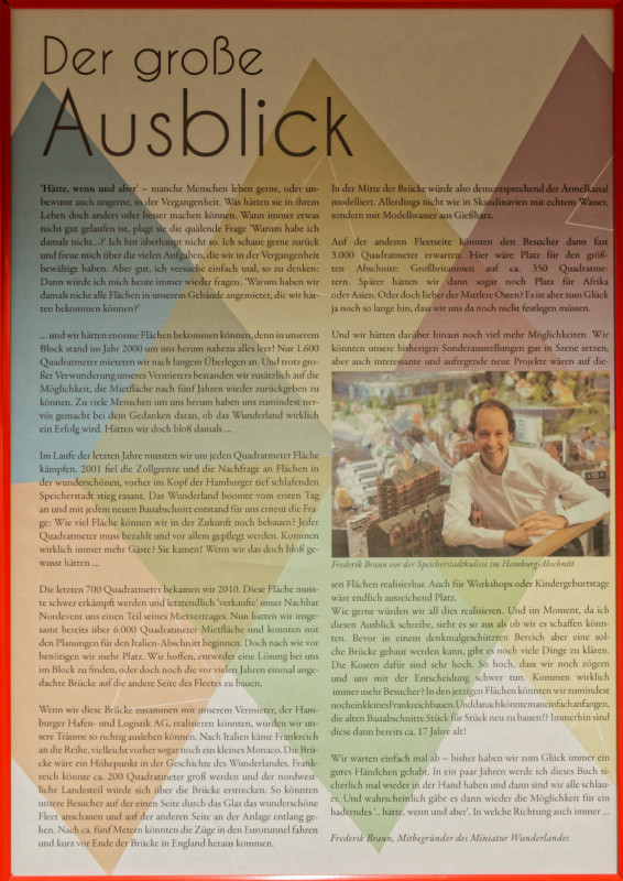 Italien ist mehr als nur ein weiterer Bauabschnitt. Italien ist Teil des Traums, der noch viele weitere Jahre andauert, wie Freddy auf der letzten Seite des Buchs 5000 Tage Miniatur Wunderland formuliert: