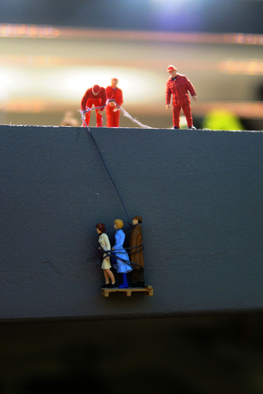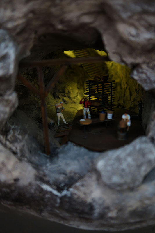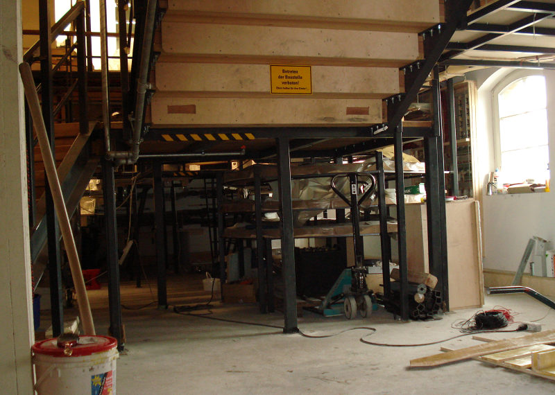 Man krabbelt unter der Empore der Treppe im Schweiz-Abschnitt durch: Vielen Dank für Deine vielen guten und interessanten Fotos - da kommt leicht "Lust auf mehr" auf ...Diese Helme müssen von jedem Besucher unter der Schweiz aufgesetzt werden da man unter einer Stahlkonstruktion für den Berg durchkrabbeln muss