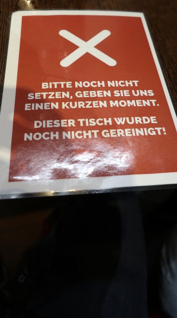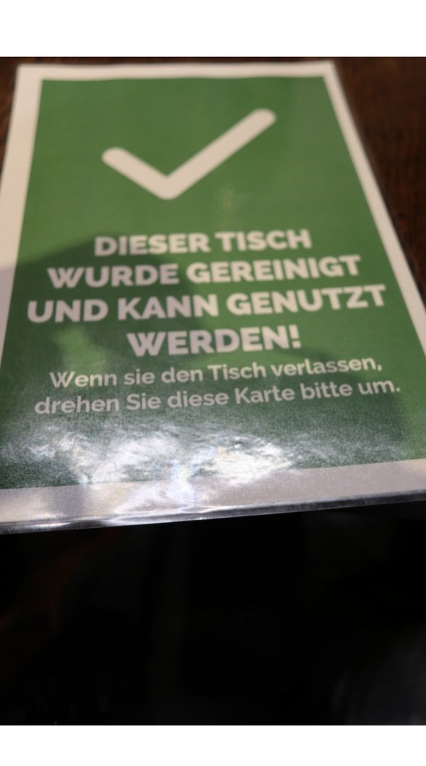Wir finden das Hygieneko zept sehr gelungen besonders das mit dem Schild worauf man erkennen kann , ob der Tisch benutzt werden darf.