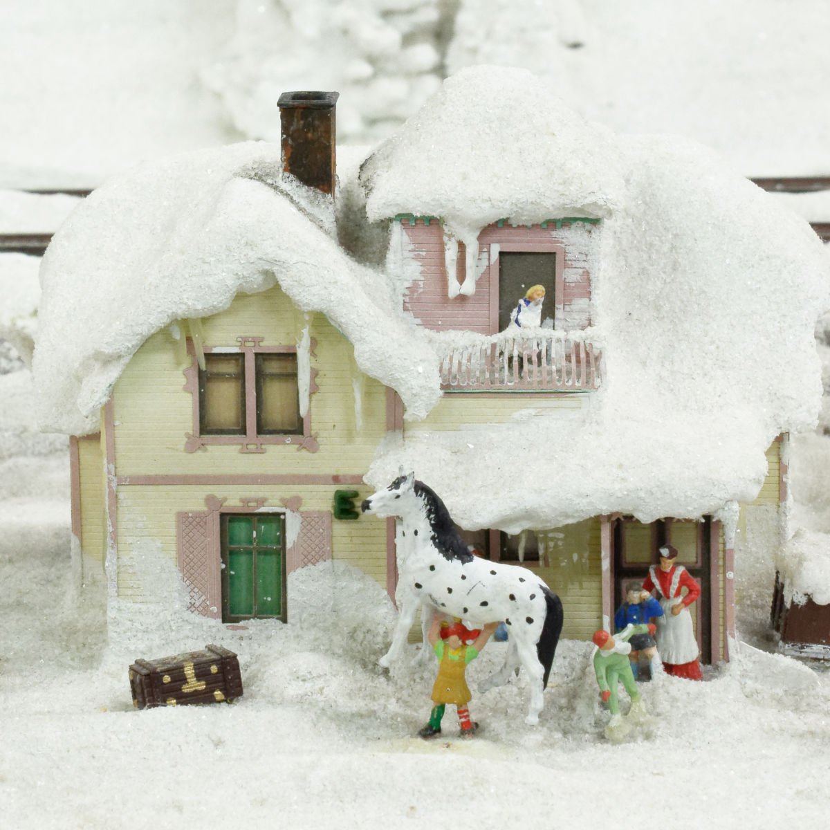 här ser du Pippi Långstrump framför Villan Villekulla. Hon är den starkaste tjejen i världen och hon lyfter upp sin häst med lätthet: