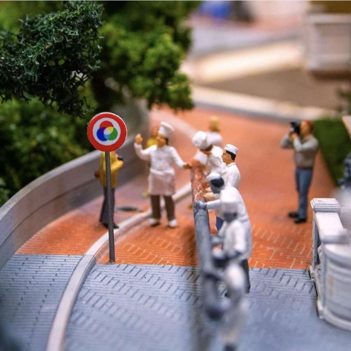 wenn ich mir das Schild so ansehe, erinnert mich das Farbenspiel in der Mitte an die gute alte Farbbildröhre (Deltaröhre) / die Farbfernsehtechnik.