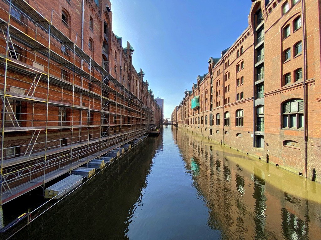 Am Kehrwiederfleet hat jemand einen Balkon gebaut.