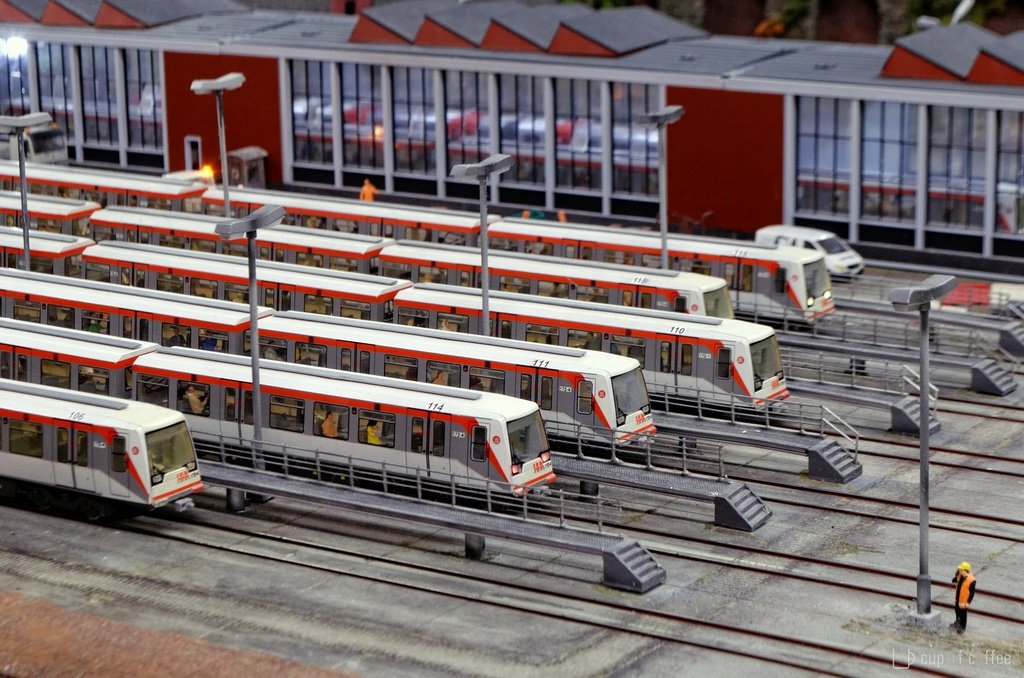 Ein Teil der DT4-Flotte der Miniatur Hochbahn.