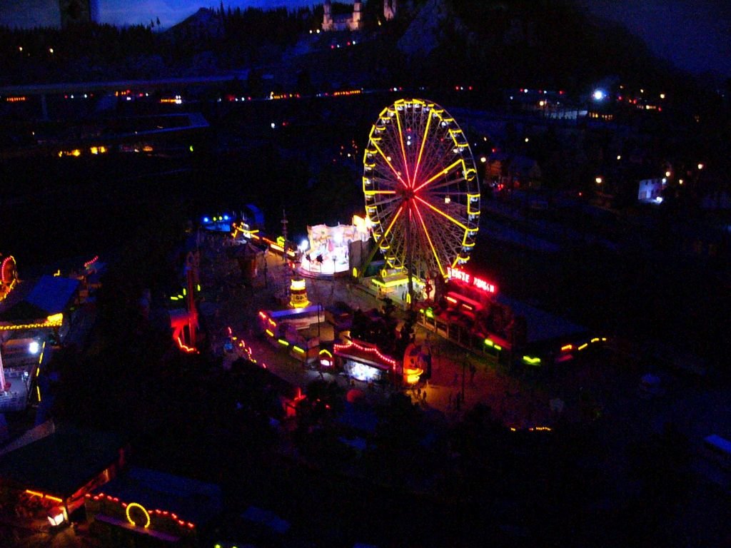 hier ist die alte Kirmes bei Nacht.
