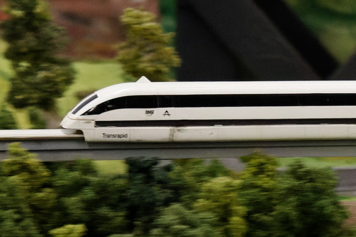 Leider ist der Transrapid gänzlich unscharf, obwohl er mitten durch die Schärfeebene saust. Ist meine Kamera kaputt?