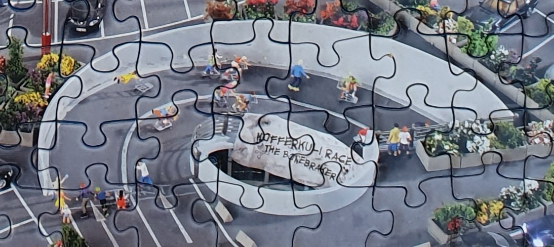 ... und immer eine Bank breit Sicherheitsabstand unter dem Po - oder besser einen fast ganzen Block.