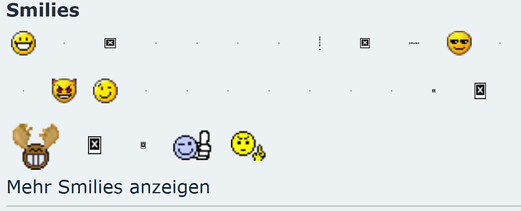 Und die Smilies sehen so aus Kann kaum am Rechner liegen, da ich nix gelöscht habe.