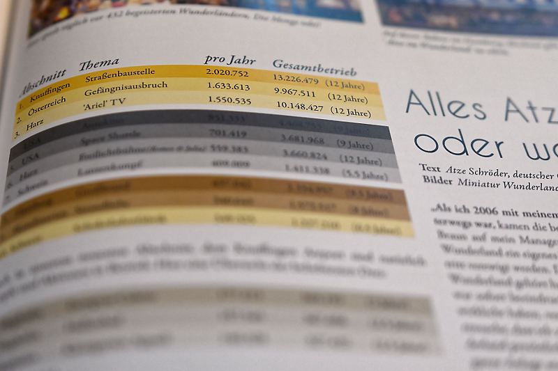 Mein geheimer Favoritentipp (MiWuLa insgesamt) wäre die Schweizer Schokoladenfabrik, und ich persönlich finde die Schleuse (Skandinavien) sehr gut gemacht, wobei mich die Sprengung in Kiruna häufig erschreckt. Die Elbphilharmonie könnte inzwischen auch mit zu den häufigsten Druckknopfaktionen zählen. Pannen und Aussetzer machen eine Gesamtbeurteilung und einen echten Vergleich nach Häufigkeit wohl unmöglich, z.B. Transrapid, Wilde Maus ...