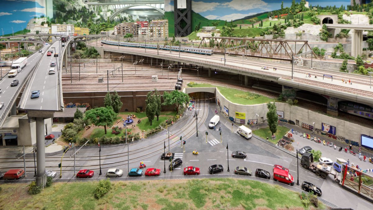 Vielleicht würden gegen schiefe Pfosten ausreichend tiefe Löcher in die schöne Multiplexplatten helfen, die mittels mobilem (kleinem) Bohrständer / Oberfräse exakt senkrecht gebohrt werden? Oder geschieht das wohlmöglich bereits so (in Rom sind die meisten Pfosten ziemlich gut gelungen)?Und damit beim Bergen verunfallter Züge oder beim Reinigen der Anlage nicht zu viele zusätzliche Schäden entstehen, könnte man vielleicht noch mehr Trittflächen bauen? Spontane Idee: Ist es möglich, nach dem Prinzip der Straßenhändler in Venedig Klappmechanismen zu installieren, sodass sich eine detailliert ausgestaltete Landschaftsfläche per Umklappmechanismus in eine Trittfläche verwandeln kann? Oder ist das inzwischen ganz unnötig, weil es genügend Wartungsluken gibt?