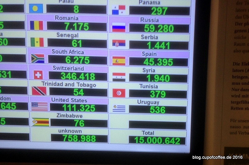 Tatsächlich haben wir eine ziemliche Punktlandung hingelegt. Wir waren für 14.00 Uhr angemeldet und der 15.000.000te Gast muss ziemlich genau gegen 14.00 durch den Einlass gegangen sein.
