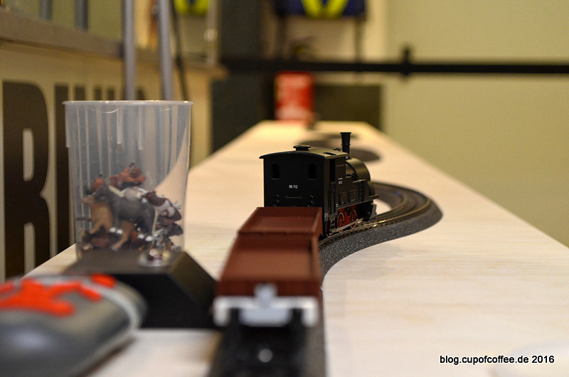Allerdings haben wir ein paar Anregungen mit nach Hause genommen. Der Lütte hat heute tatsächlich freiwillig den Tisch gedeckt. Hat zwar etwas gedauert, bis Besteck und Gläser mit der MoBa von der Küche in die Essecke transportiert waren, aber bekanntlich ist ja der Weg das Ziel...