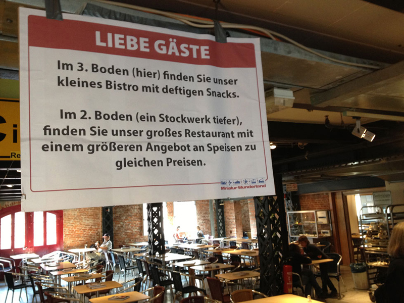 So unter unsren vier Augen kann ich berichten, dass es in dieser Stadt mit dem Gläsernen Reichstag so eine Art Modellstadtausstellung oben in einem Shoppingcenter gibt, wo man - wenn mans lokalisiert hat - für nur 3,00 Euro einen Pott Kaffee mit einer ganz schönen Torte dazu kriegt. Und schon eine Stunde später findet man einen anderen Strudel oder Torte - was also ungef. 3,00 Euro der Stunde macht.