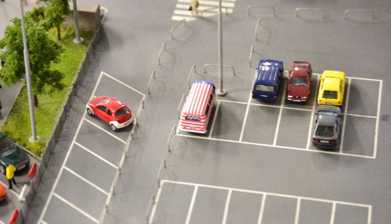 Was ist denn hier passiert? Das kann so nich. Nein, wirklich nicht. Entweder der Fahrer des rot-weißen Ka hat dort geparkt, seinen Flieger bestiegen, und dann kam der Bautrupp, der die Sperr-Geländer einbetoniert hat. Oder der Ka kam von (Norden?), rückwärts, um diesen seltsamen Platz zu nutzen. Aber was macht er, wenn sich da noch einer daneben stellt?