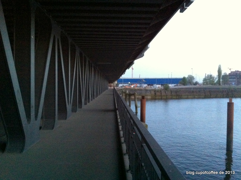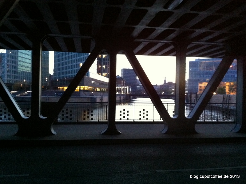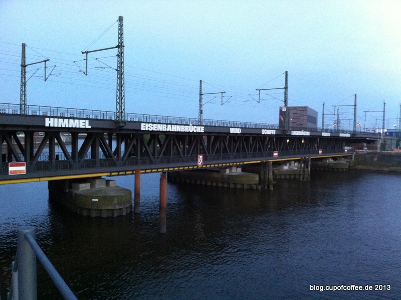Anstatt per U3 zum Baumwall zu fahren, oder auf direktem Wege zum Kehrwieder zu laufen, kann ich einen kleinen Umweg über die Eisenbahnbrücke am Oberhafen empfehlen. Dauert je nach Performance und Anzahl der Fotopausen zwischen 30 Minuten und einer Stunde.