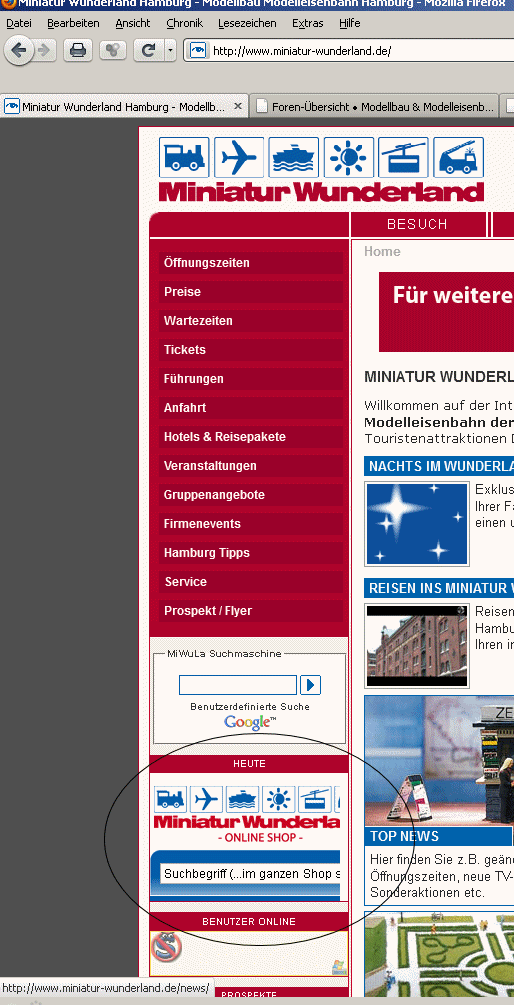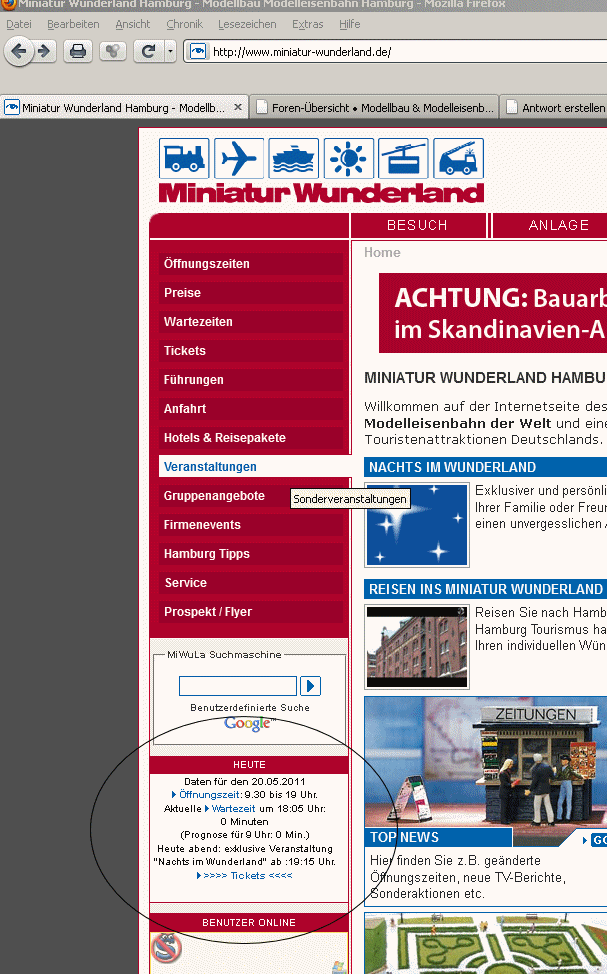 Auf der Startseite steht zur Zeit der Hinweis Nachts im Wunderland ->Tickets<-