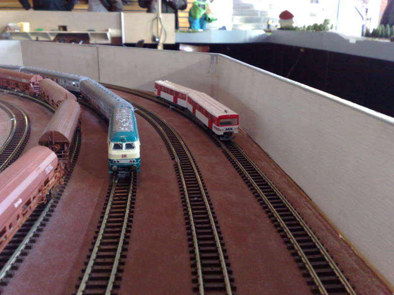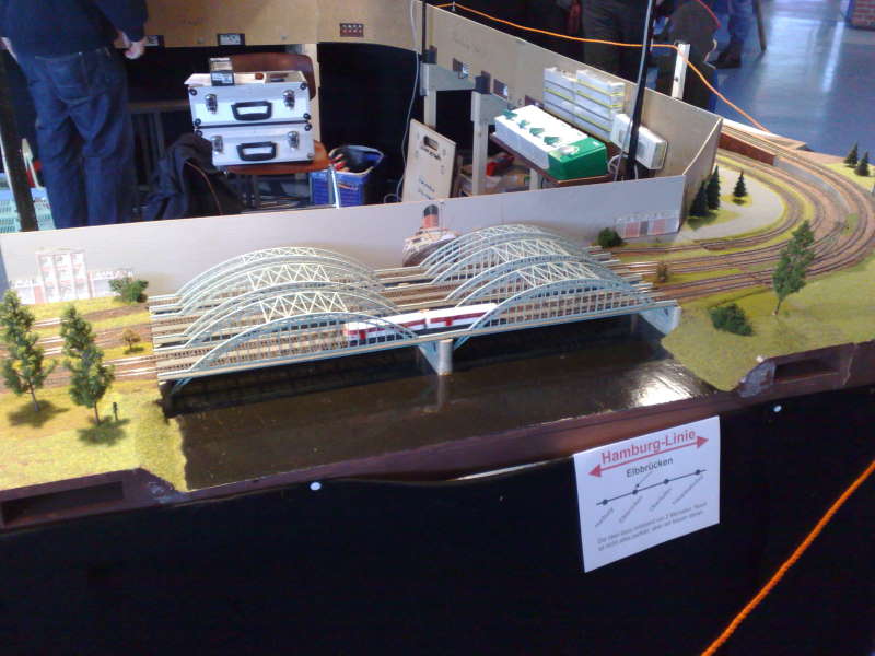 Dann ging es nach Bad Oldesloe zur dortigen Modellbahnausstellung, wo er auf der Modulanlage des MEC Kölln-Reisiek und des N-Bahner-Kreises ein paar Runden drehen durfte.