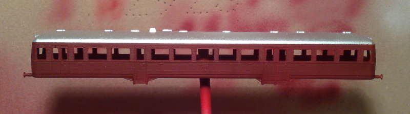 Also Gehäuse erstmal grundiert ... Dann der erste Versuch in Karminrot (purpur erschien mir recht dunkel) Dann aber doch in Purpur lackiert, das Karminrot war doch zu grell ... und dann das Dach noch silber abgesetzt