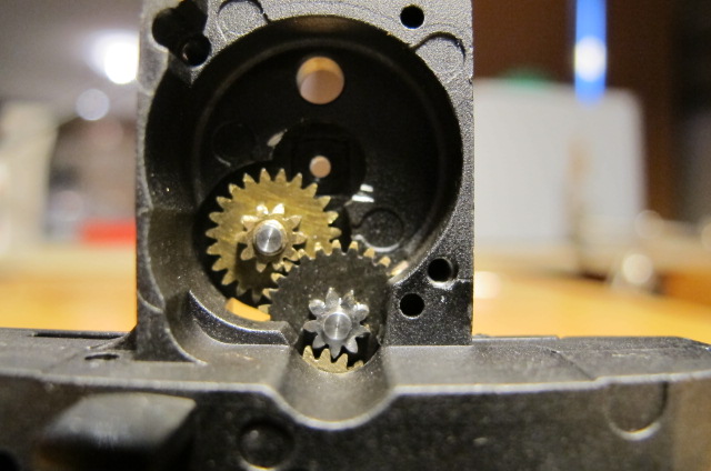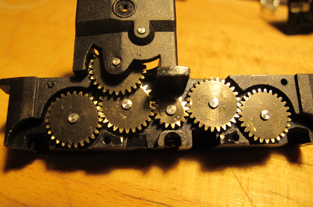 10. Habe ich die Zahnräder noch an den Zähnen leicht geölt und an den freien Flächen ganz wenig.