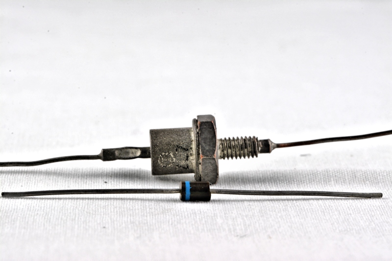 Das dicke silberne Ding auf dem Bild ist eine 10W Z-Diode, das kleine Teil eine 1N4007.