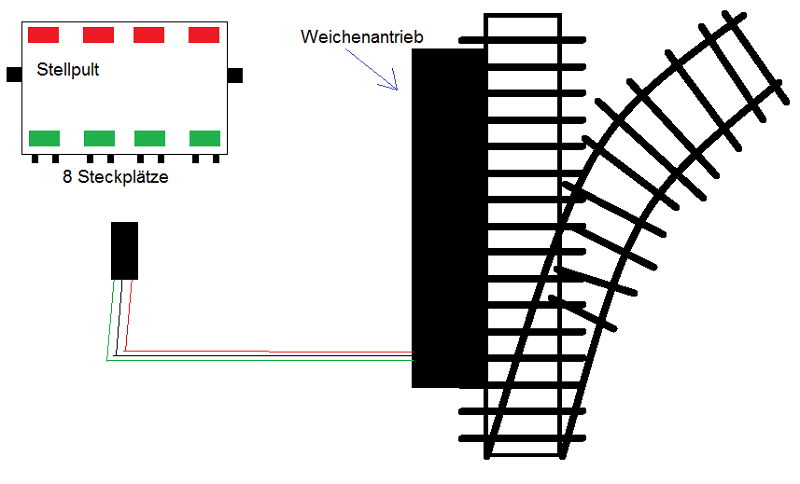 1. Der Stellpult hat 8 Steckplätze für 4 Weichen. Da ist also kein Platz für einen gemeinsamen Draht.