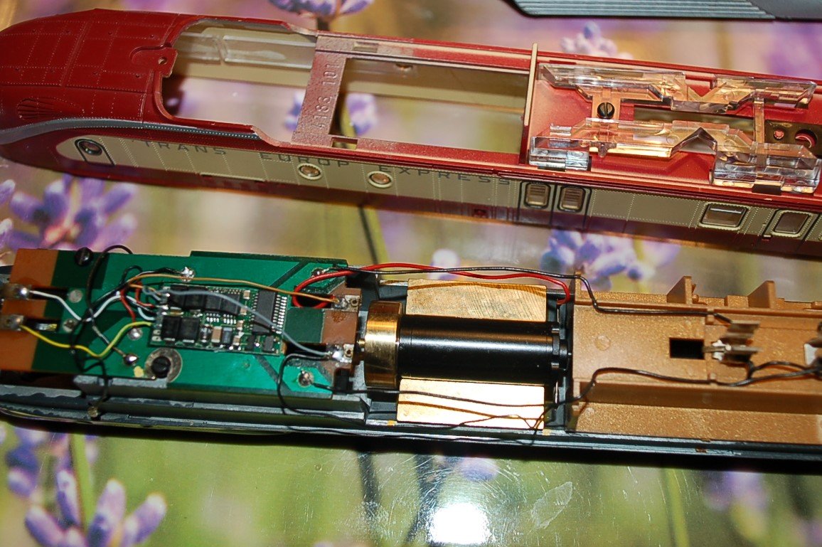 Hallo Zusammen, ich bin Wiedereinsteiger und komme aus dem analogen Zeitalter... Nun habe eine TEE bekommen mit folgendem Problem: Der Zug fährt nicht auf meiner Anlage. Er ruckt kurz und das war es. Ich hab die Bahn geöffnet und versucht mit den Ersatzteiliste von Roco zu vergleichen. Bin mir aber nicht sicher um welchen Zug es sich handelt. Vielleicht kann mir ja einer von euch helfen. am liebsten würde ich ihn erstmal im analogen Betrieb betreiben.