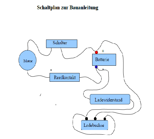 Ich bin davon ausgegangen, dass dort ein Widerstand eingezeichnet ist (unten rot gekennzeichnet und der Schalter für die Betriebsspannung ist geschlossen/auf "An"), der dort aber nicht hingehört. Der sollte als Ladewiderstand in eine der (fetten,blauen)Leitungen von der Ladebuchse zum Akku hin eingefügt werden.(rote Kringel)Dudi92 hat geschrieben:Na wenn du dich da mal nicht irrst Toni. Für mich sieht das schon korrekt aus. Der Reed schließt den Motor kurz, wenn das Auto steht. Das macht schon Sinn. Oder beziehst du dich jetzt auf das Foto? Da kann ich nämlich kaum etwas erkennen.
