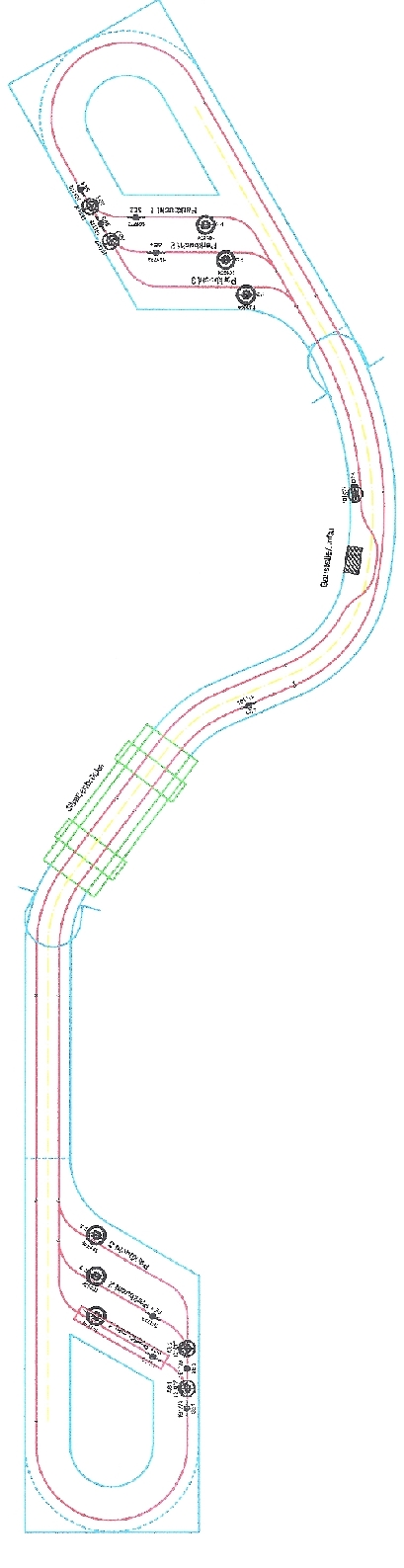 Nachfolgende, im Bau befindliche Anlage ist mit Fahrdraht gebaut und funktioniert auch mit PKWs reibungslos. Voraussetzung ist ein feinst verlegter Fahrdraht, der an jeder Stelle nur Straßenfarbe darüber hat. Eine Mischung Fahrdraht/Magnetband bietet sich nicht an wegen der unterschiedlichen Schleifereinstellungen.