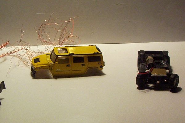 5.Wie fährt der Hummer mit einem 1:5 Getriebe? Dann ist er doch schneller als das Original (Und wesentlich weniger geländegängig.)! Hast du ein Video davon?