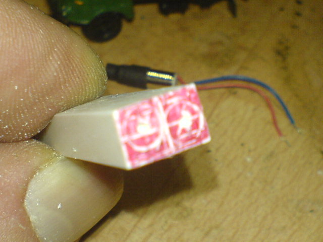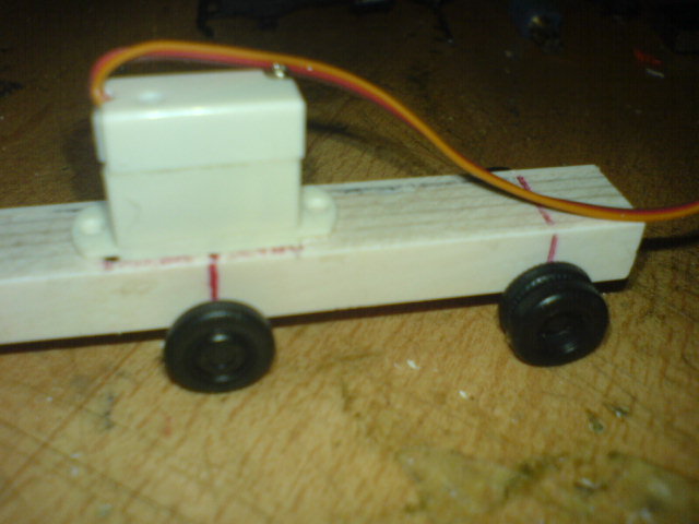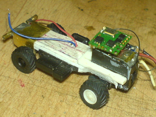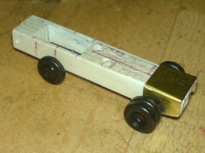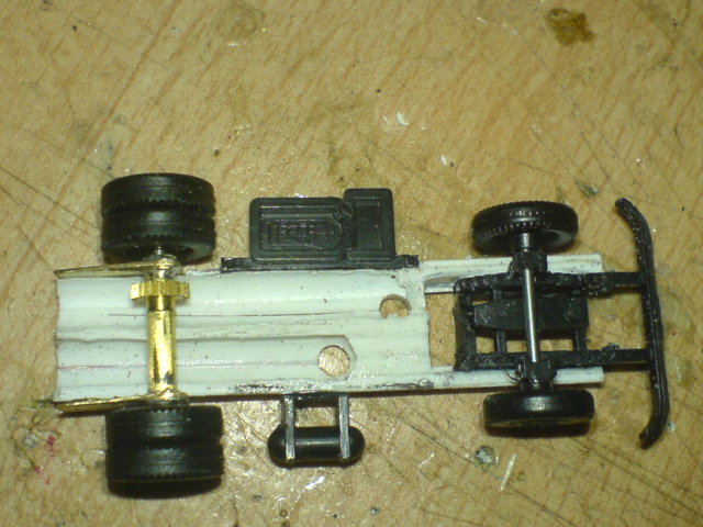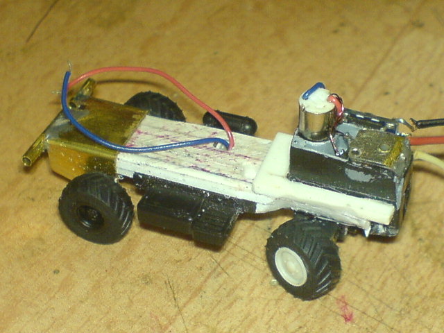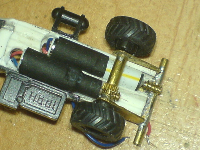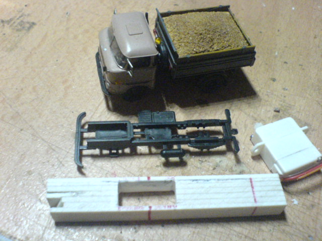 Da lag nun das Plastikklötzchen vor seinem fertigen "Kollegen" und einem Teil vom Fahrgestell des Modellfahrzeuges.