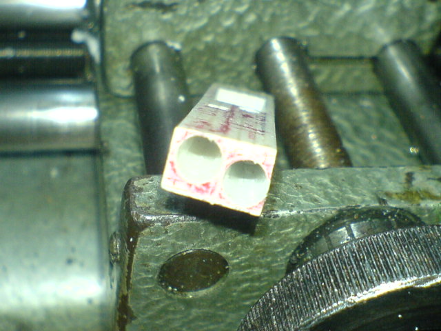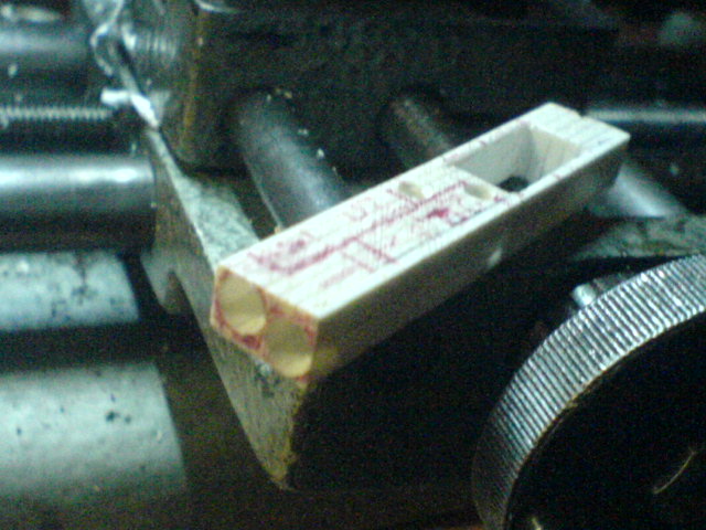 Gesagt, getan... die Bohrungen sind drin... genau so, wie die Öffnung für den später zu verbauenden Servo, die auch gleich mit herausgefräst wurde.