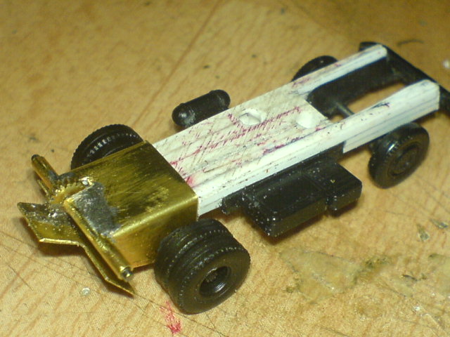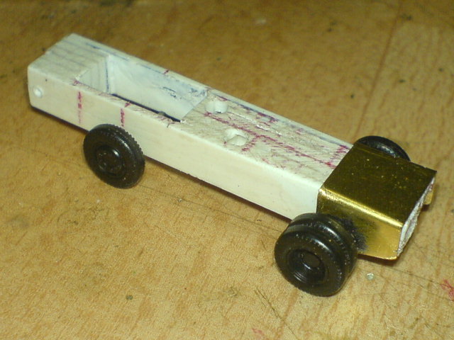Weiter ging es dann mit dem Bau der Hinterachshalterung, die aus 0,3mm Ms Blech gebogen wurde und dann als eigentlicher Achshalter ein 2,5mm Röhrchen eingelötet bekam.