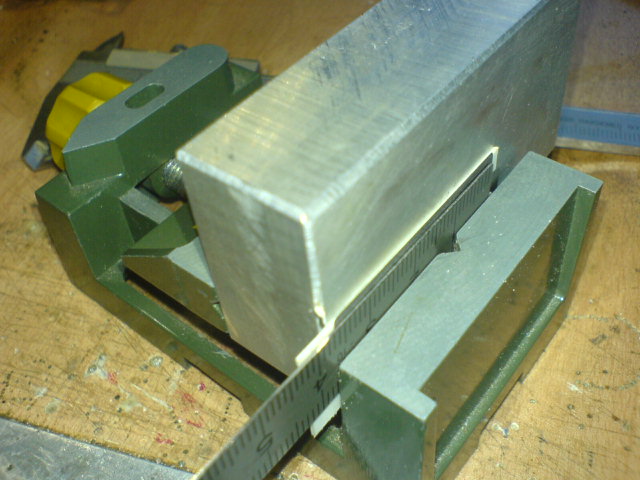 Versuch macht kluch und ausmessen bringt die Gewissheit, dass es auch wirklich so passt, wie erdacht.(auch wenn es auf den Bildern gar nicht so ausschaut, wegen der etwas "verschoben" scheinenden Anrisslinien...(wurde dann an der Maschine noch ordentlich und exakt auf Maß eingestellt)