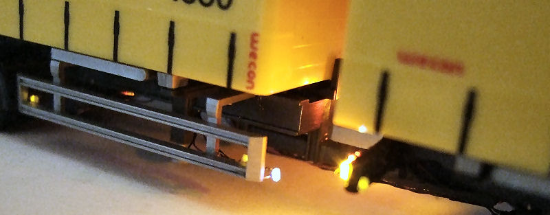 Es handelt sich um einen Mercedes-Benz Actros der DHL GmbH, den vielleicht einige von euch aus einer Faller Sartpackung kennen. Dieser besitzt jetzt einen DC05-SI Decoder, der folgende Beleuchtungsfunktionen steuert: