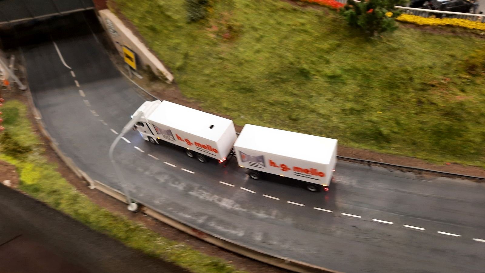 Der Coke-Truck sollte eigentlich nur zur Weihnachtszeit fahren, auf besonderen Wunsch einiger Gäste fährt er jetzt aber weiterhin im Landkreis Knuffingen. Ich hätte gerne die doppelte Anzahl an Lampen eingebaut, das hätte aber von der Stromversorgung her nicht funktioniert. Bei einer Bordspannung von 2,4 Volt ist halt irgendwann ende. Um diese große Anzahl von LEDs zu versorgen wird beim Coke-Truck die Spannung von 2,4 auf 60 Volt transformiert. 'Reichweite' mit einer Tank-Füllung: ca. 500 Meter, entspr. ca. 1,5 Stunden Laufzeit. Im Vergleich der Milka-LKW: ca. 4200 Meter.