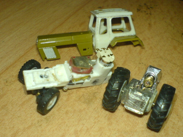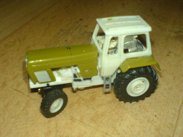Der Vorderteil des Fahrwerkes enstammt einem durch etwas unachtsame Bearbeitung an/auf anderer (Bau-)Stelle etwas zerbröseltem Metallabgusses des Treckerfahrwerkes und wurde so doch noch einer sinnvollen Verwendung zugeführt. (Bild 5)