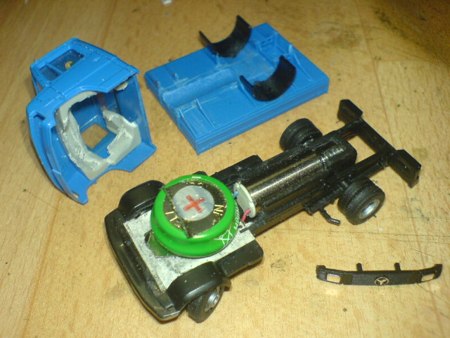Das "Gestühl" wurde so ausgefräst, dass ein 80mAh NiMh Akku von Faller darin versteckt werden kann und so die Ladefläche gänzlich leer bleibt.