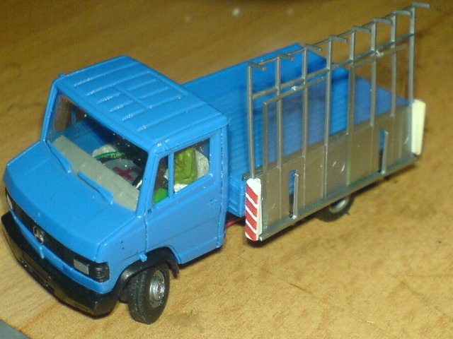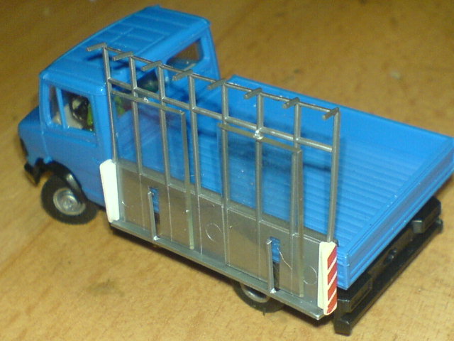 Als Option für eine Ladung steht die beim Modell beiliegende Glastransporthalterung und einige alte, gebrauchte Fenster zur Wahl.