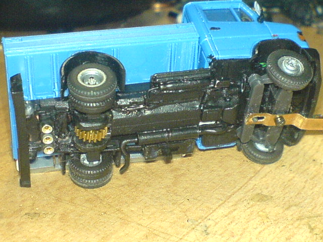 Müssen nur noch Lenkhebel, Schalter(in einer zusätzlichen Werkzeugkiste, links unter der Pritsche), Reedkontakt(im Tank) und Ladebuchse(hinten im Reserverad) verbaut werden und dann kann er die erste Probefahrt machen.
