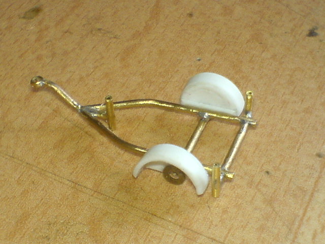 Dafür kam für den Aufbau ein Teil von einem Jano Bausatz und für das Fahrgestell ganz herkömmlich Messing zu Einsatz.