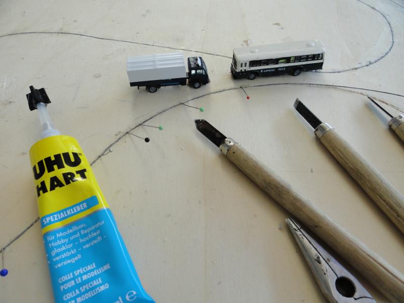 ich habe mir eine kleine Testplatte für Faller - Car und selbstbau Modelle erstellt.