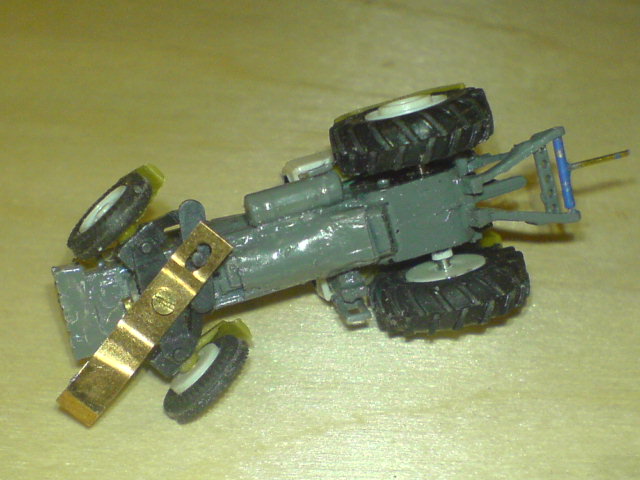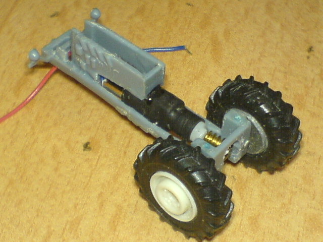 Die Lenkbewegung wird über Zahnradsegmente auf die Vorderachse übertragen und der Akku, Empfänger usw. sollen im (zwangsweise) mitgeführtem Anhänger ihren Platz finden. Die elektrischen Verbindungen werden dann als Zapfwelle und div. Hydraulikleitungen getarnt ausgeführt werden.