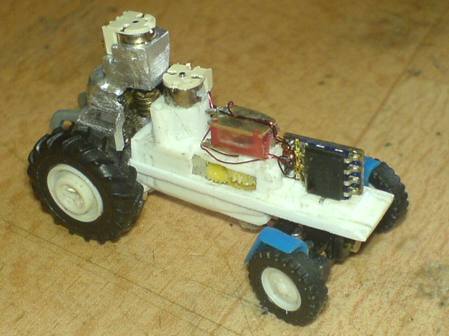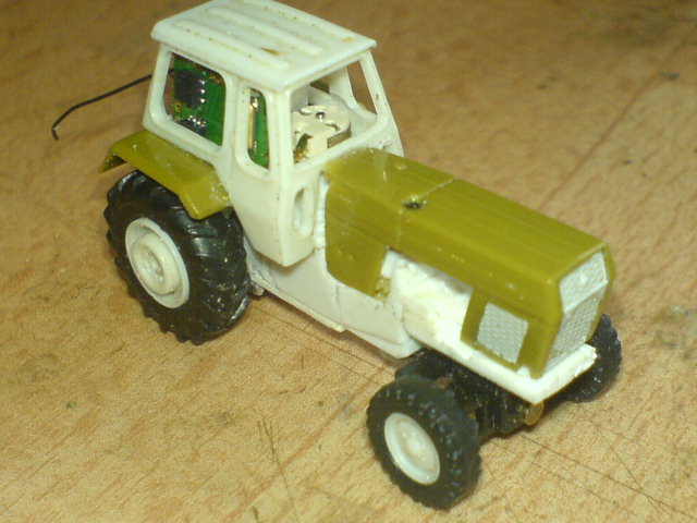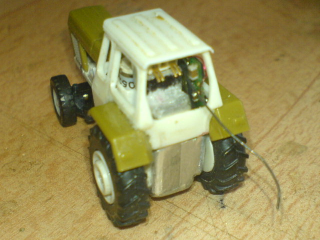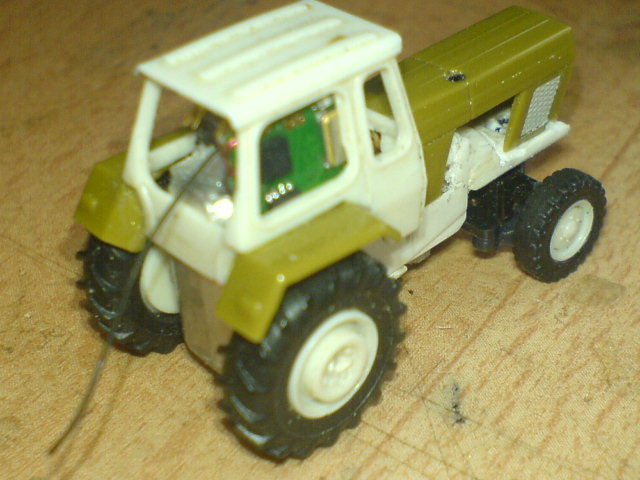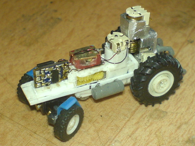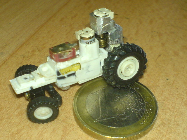 Der passt, nach entfernen von allen nicht benötigten Teilen seines Gehäuses und Auslagerung der Elektronik, auch gerade mal so ins Fahrerhäusel hinein.