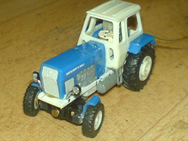 Die Modellpflege beinhaltet zwar kein Facelifting oder ähnliche "Späße", die heut zu Tage üblich sind, aber da der verbaute Akku den Geist aufgegeben hat und der Trecker nur als Stellplatzfresser in der Vitrine ja auch nicht unbedingt von Vorteil ist, wurde er nun mal etwas überarbeitet und er erhält nun gleich ein kleines "Upgrade" auf RC.