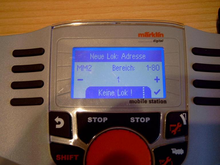 Das soll das Display zeigen wenn man eine neue Lok anlegen will. Man drückt nun die Taste SHIFT und LOKSYMBOL zusammen.